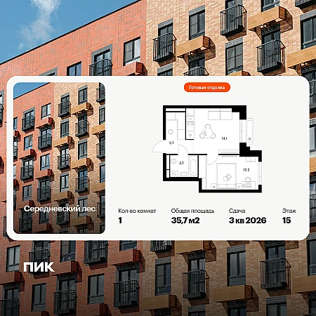 Продается 1-комн. квартира, площадью 37.31 м2 в монолитной новостройке в 25 мин. транспортом от м. Медведково. Возможен вариант покупки с использованием ипотечных средств.