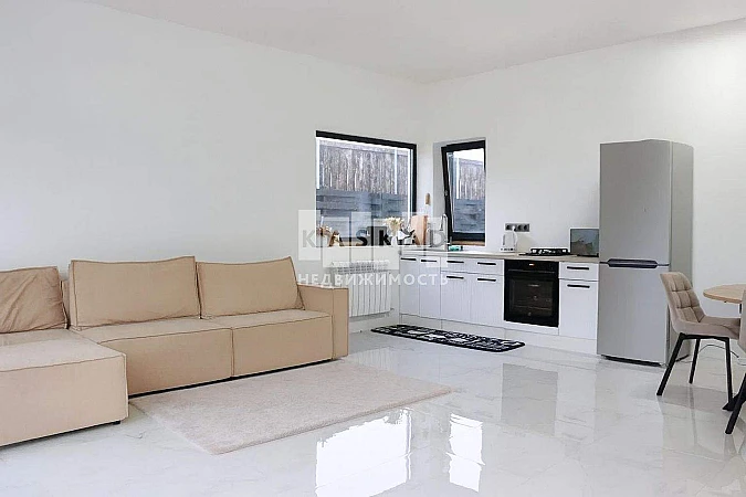 Во всем доме - регулируемые теплые водяные полы. В каждой комнате есть своя дверь для выхода во двор. Из гостиной и спальни есть отдельные выходы на большую террасу.