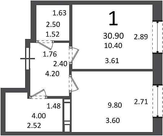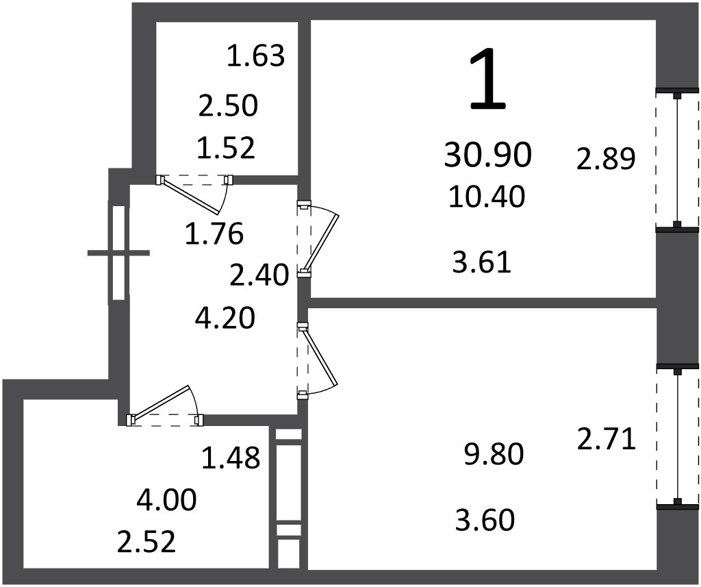 Квартира, 1-комн., 30,9 м², НАО | НАО, муниципальный округ Коммунарка, пр-т Куприна, д. 30, корп. 9, этаж № 16, кв. 607