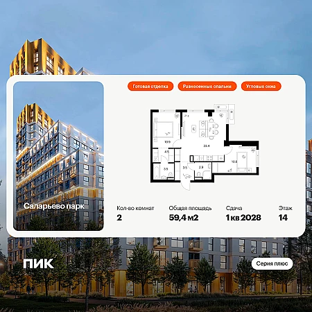 Купить 2к квартиру 59 м² в ЖК Саларьево парк