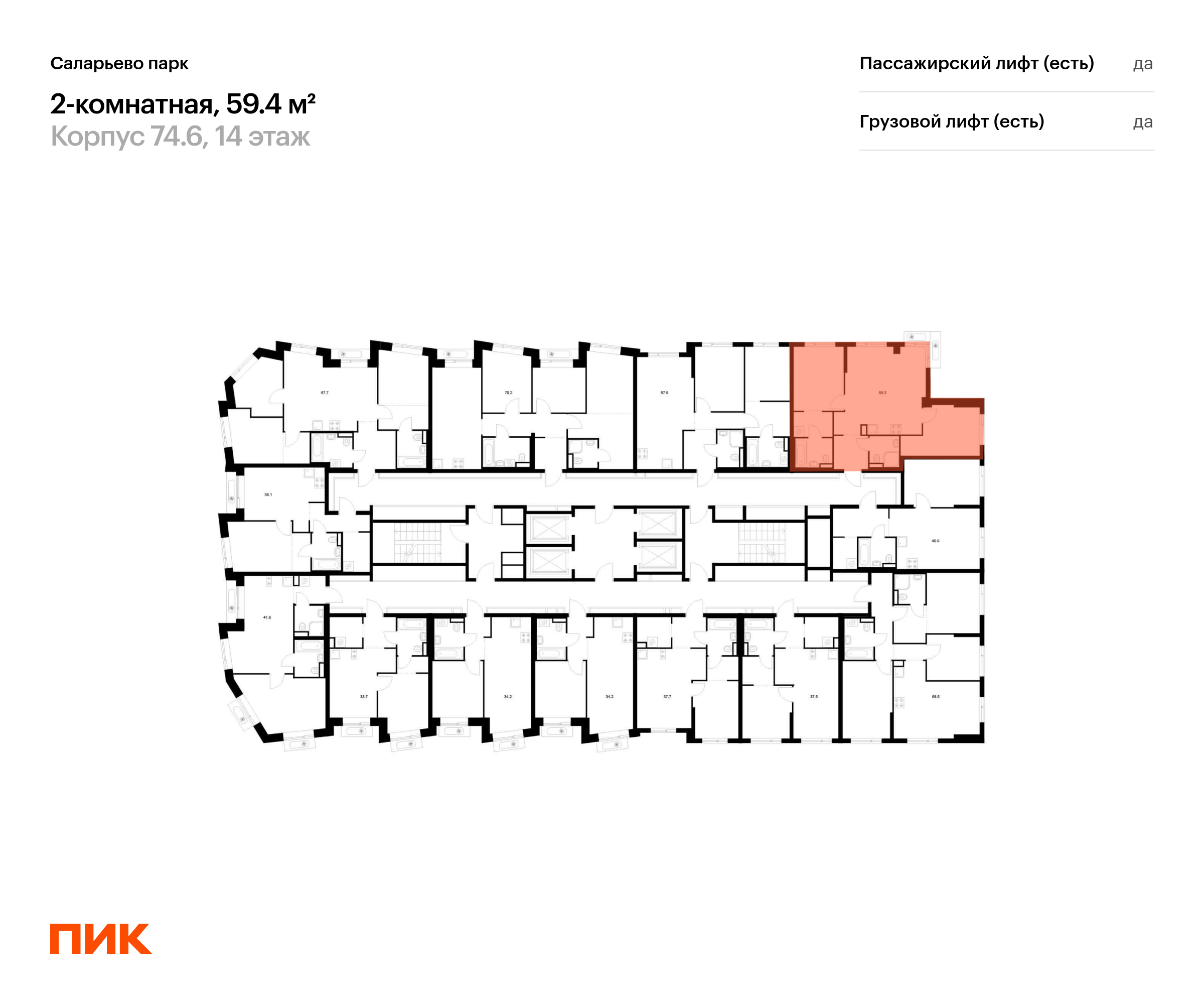 Продаётся 2-комн.квартира площадью 59.40 кв.м на 14 этаже 18 этажного дома (Корпус 74.6, секция 6) проекта ПИК Саларьево парк. Светлый просторный подъезд на уровне земли, функциональная планировка, большие окна, с отделкой.