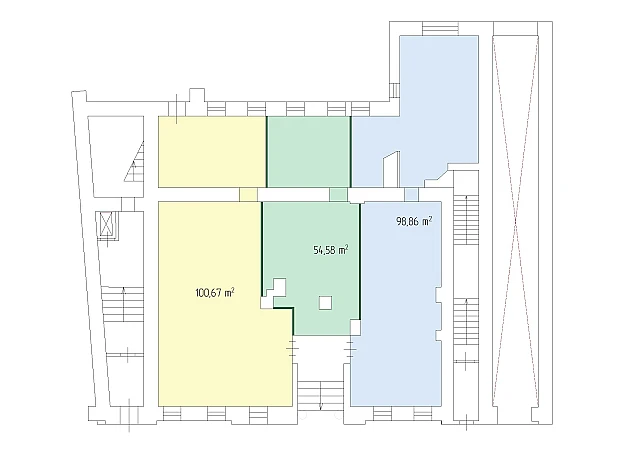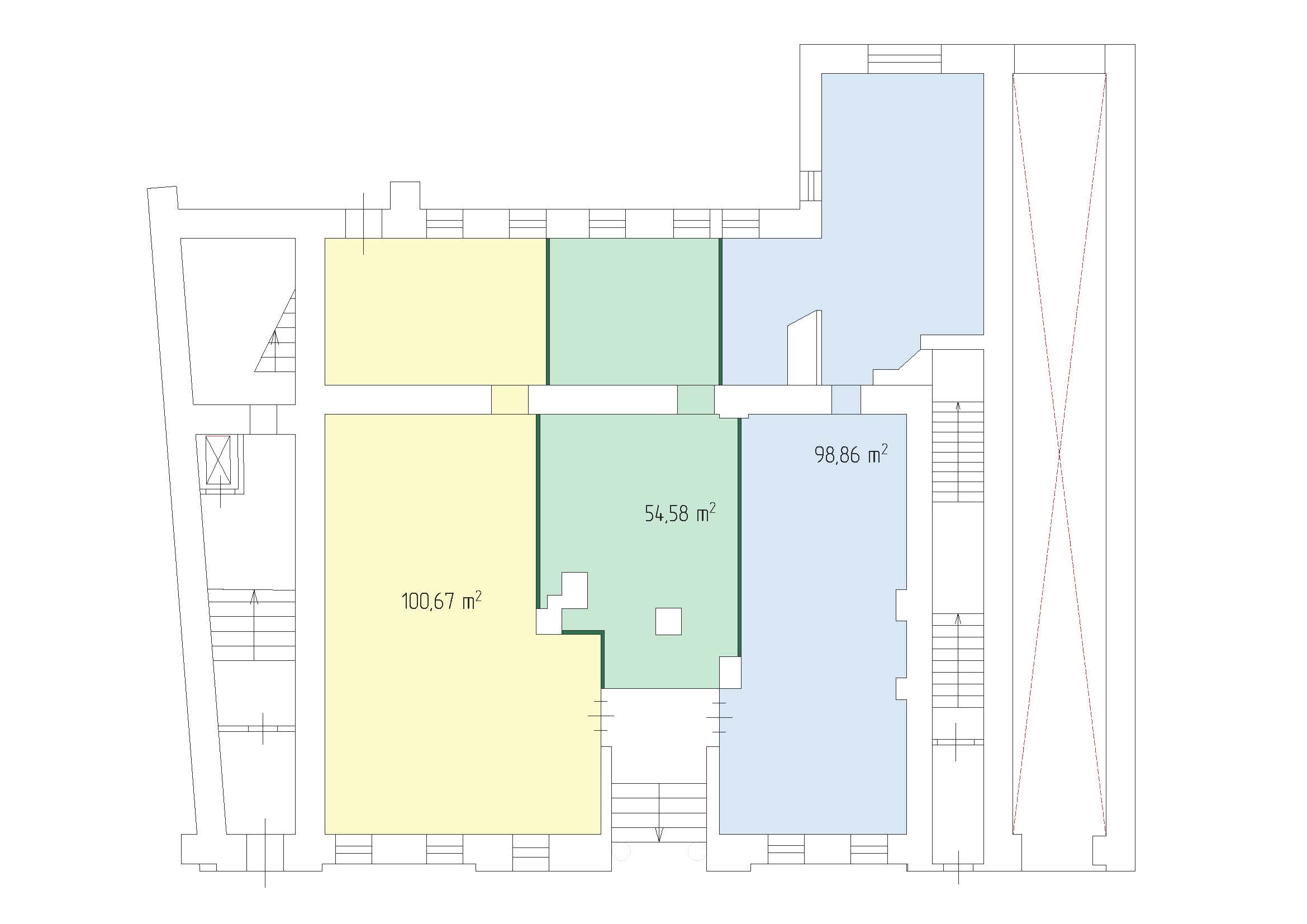 Банк, первая линия, близко к метро, можно поделить на 3 блока