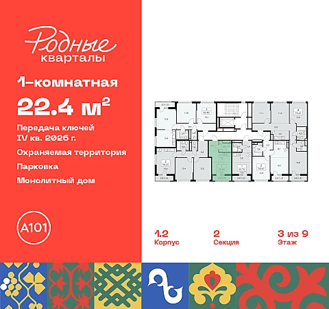 Купить 1к квартиру 22 м² в ЖК Родные кварталы