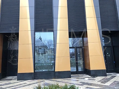 Новые витрины и входные группы с фасада дома. Перекрытия - ж/б.