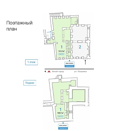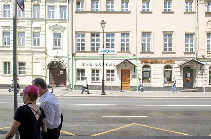 Отдельная входная группа и витрины с фасада с улицы Покровка
