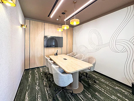 С мебелью. Планировка - смешанная. Приточно-вытяжная вентиляция. Центральное кондиционирование. Пожарная сигнализация. Электрическая мощность: 75Вт/м². Интернет, телефония. Охрана. Видеонаблюдение. Система контроля доступа. Лифты: 43 лифта , KONE. Подземная парковка.