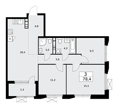 Купить 3к квартиру 84 м² в ЖК Скандинавия