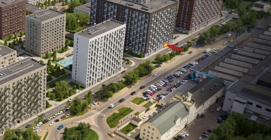 Интенсивный пешеходный поток и автомобильный трафик. Рядом торговый центр Станколит.