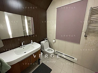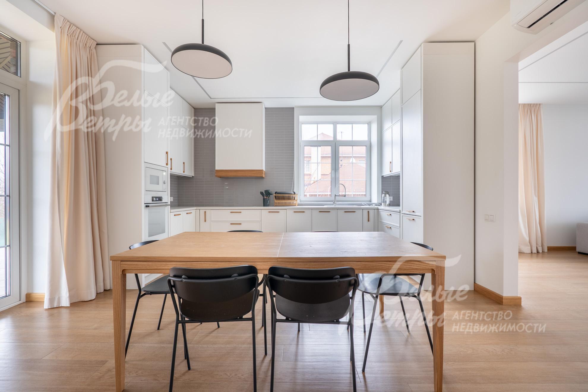 Внутренняя отделка: качественная отделка в стиле минимализма. Стены окрашены в пастельные тона, на полу паркетная доска или плитка с водяным подогревом. Лестница монолитная, ступени облицованы деревом, поручни деревянные. Двери деревянные, шпонированные. Качественная импортная сантехника ведущих производителей, душевые кабины большого размера. Высота потолков 3.2 м.
