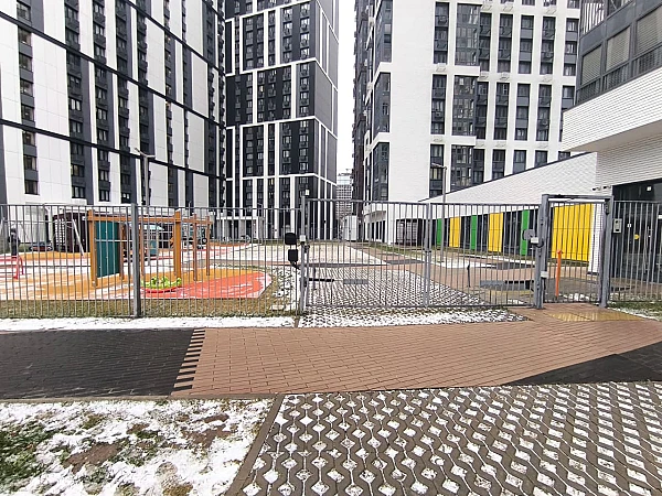 На внутренней территории комплекса организована закрытая (вход по СКУД) оборудованная площадка для прогулок и игр воспитанников (теневые навесы, песочницы, зоны для занятий спортом и пр.). Из каждой группы предусмотрен автономный выход на детскую площадку.