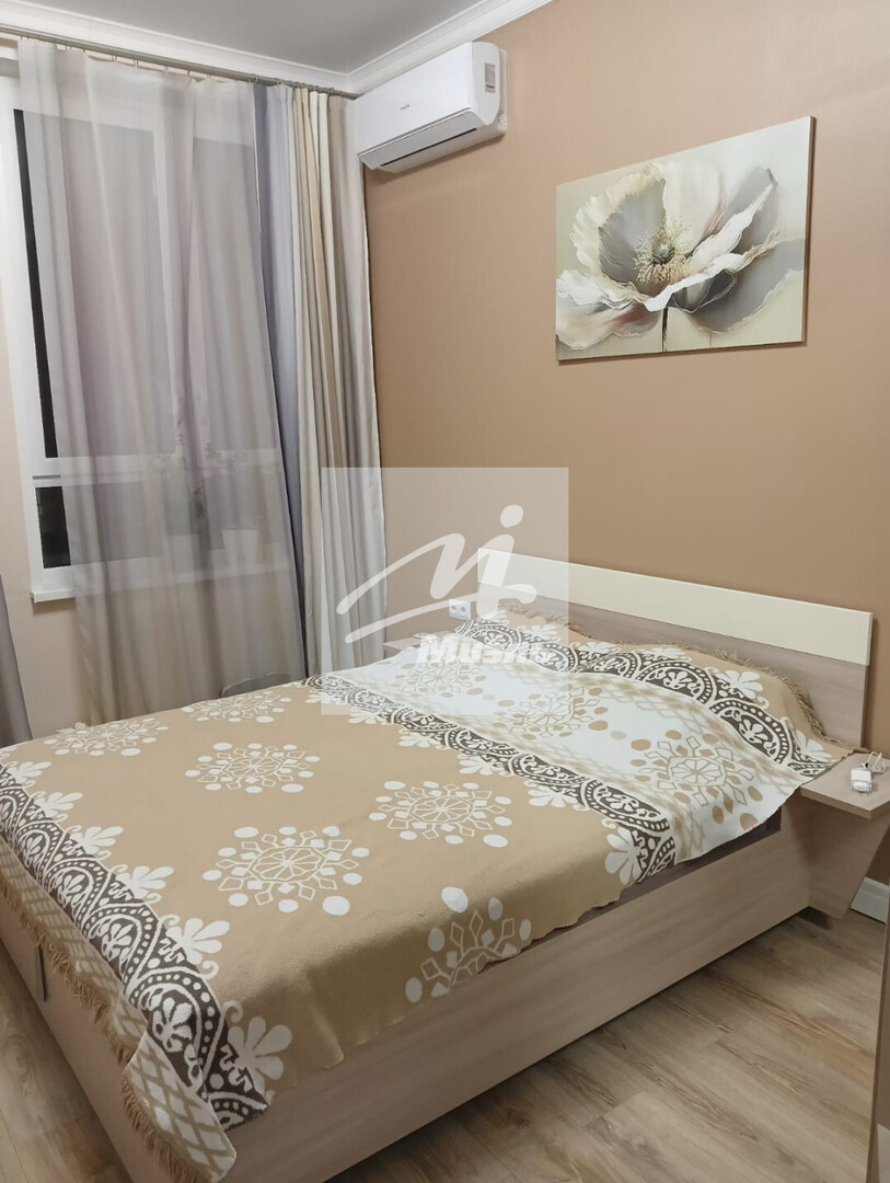 В квартире выполнен ремонт в современном стиле. На полу ламинат, в мокрых зонах и санузлах керамическая плитка, стены декорированы обоями под покраску, что создает атмосферу уюта и стиля.