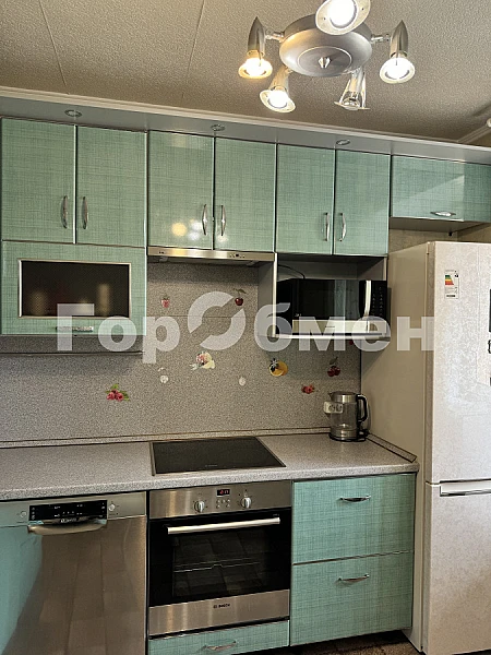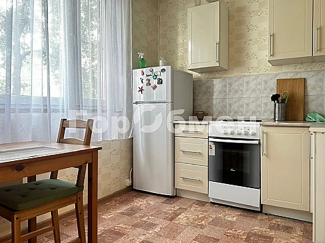 В наличии современная мебель: шкаф-купе, 2-х спальная кровать, стол, кухонный гарнитур, холодильник, стиральная машина автомат. Застекленный балкон, просторный холл.