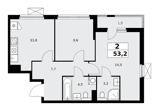Продаётся 2-комнатная квартира, площадью 53,2 кв. м на 13-м этаже дома комфорт-класса в ЖК "Бунинские кварталы". Квартира с функциональной планировкой: большие окна, высота потолка 2,8 м, балкон, гардероб, мастер-спальня.