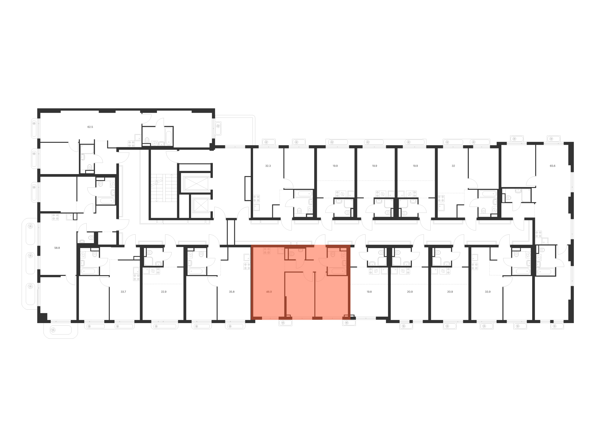 В квартирах продуман каждый метр — мы детально просчитываем все возможные сценарии и способы использовать пространство. Например, большой семье подойдёт квартира с кухней-гостиной, выделенной постирочной и спальнями, разнесёнными по разные стороны гостиной. А кому-то важнее просторная мастер-спальня с гардеробной и собственным санузлом.