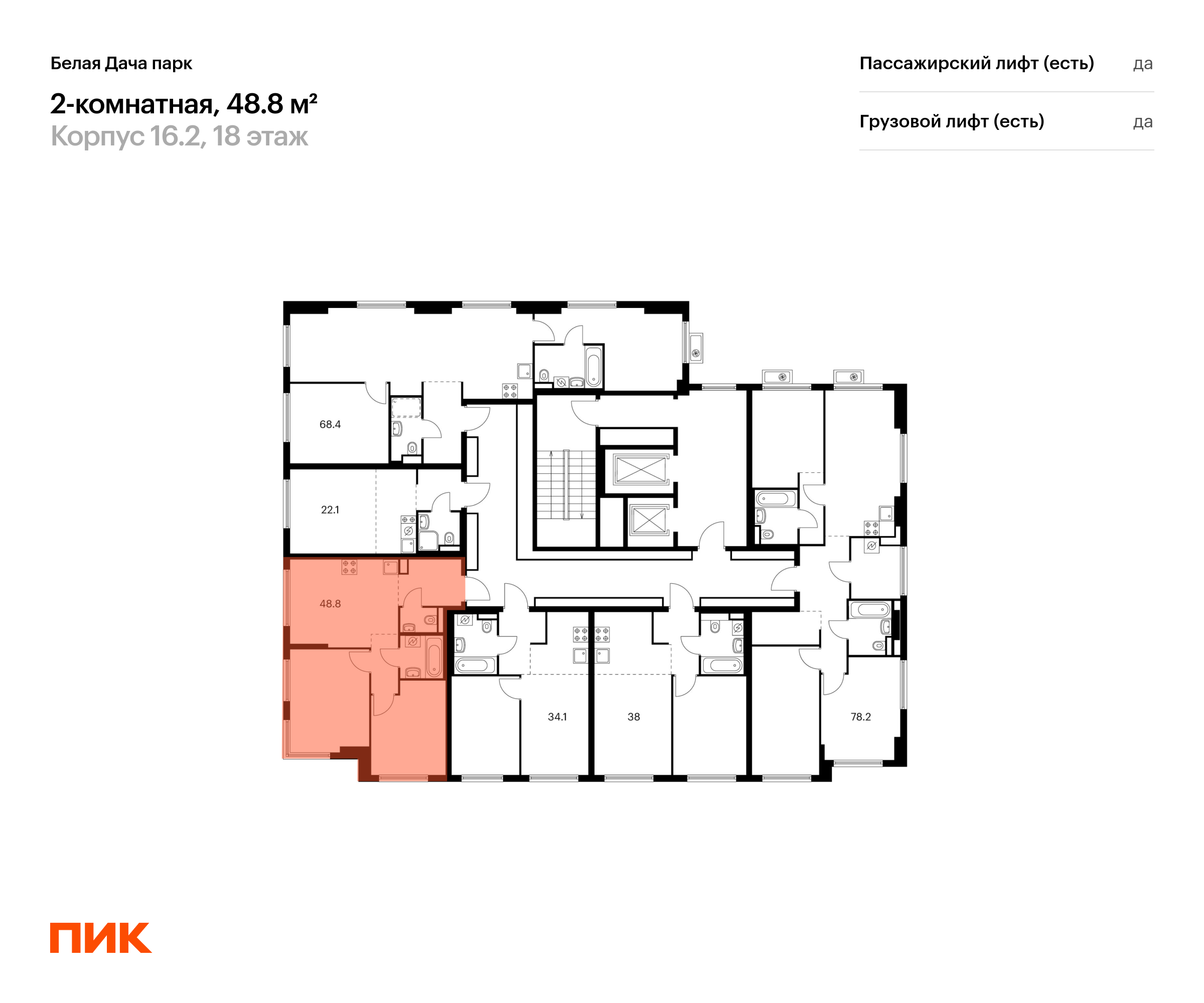 Продаётся 2-комн.квартира площадью 48.80 кв.м на 18 этаже 20 этажного дома (Корпус 16.2, секция 7) проекта ПИК Белая Дача парк. Светлый просторный подъезд на уровне земли, функциональная планировка, большие окна, с отделкой.