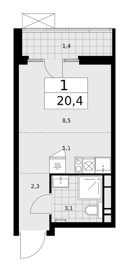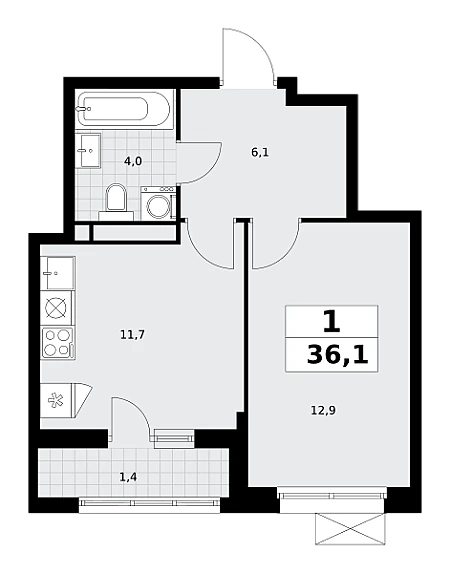 Купить 1к квартиру 34 м² в ЖК Белая Дача парк
