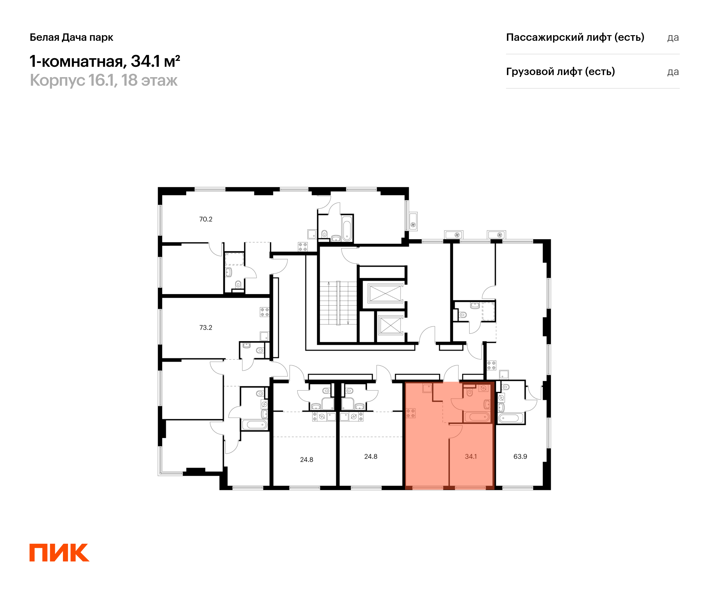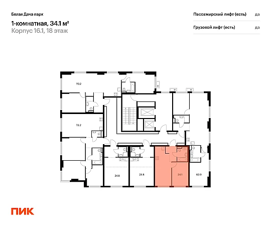 Продаётся 1-комн.квартира площадью 34.10 кв.м на 18 этаже 19 этажного дома (Корпус 16.1, секция 3) проекта ПИК Белая Дача парк. Светлый просторный подъезд на уровне земли, функциональная планировка, большие окна, с отделкой.