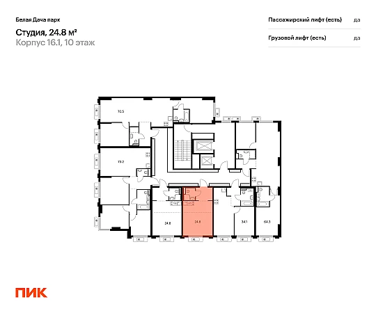 Продаётся квартира-студия площадью 24.80 кв.м на 10 этаже 19 этажного дома (Корпус 16.1, секция 3) проекта ПИК Белая Дача парк. Светлый просторный подъезд на уровне земли, функциональная планировка, большие окна, с отделкой.