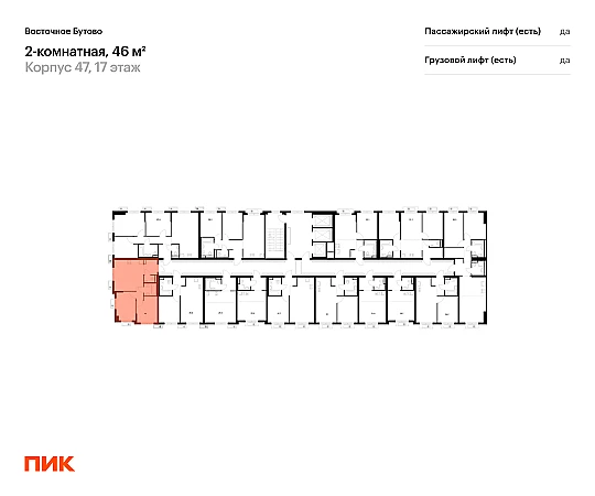 Продаётся 2-комн.квартира площадью 46.00 кв.м на 17 этаже 25 этажного дома (Корпус 47, секция 3) проекта ПИК Восточное Бутово. Светлый просторный подъезд на уровне земли, функциональная планировка, большие окна, с отделкой.