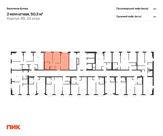 Продаётся 2-комн.квартира площадью 50.30 кв.м на 24 этаже 25 этажного дома (Корпус 48, секция 4) проекта ПИК Восточное Бутово. Светлый просторный подъезд на уровне земли, функциональная планировка, большие окна, с отделкой.