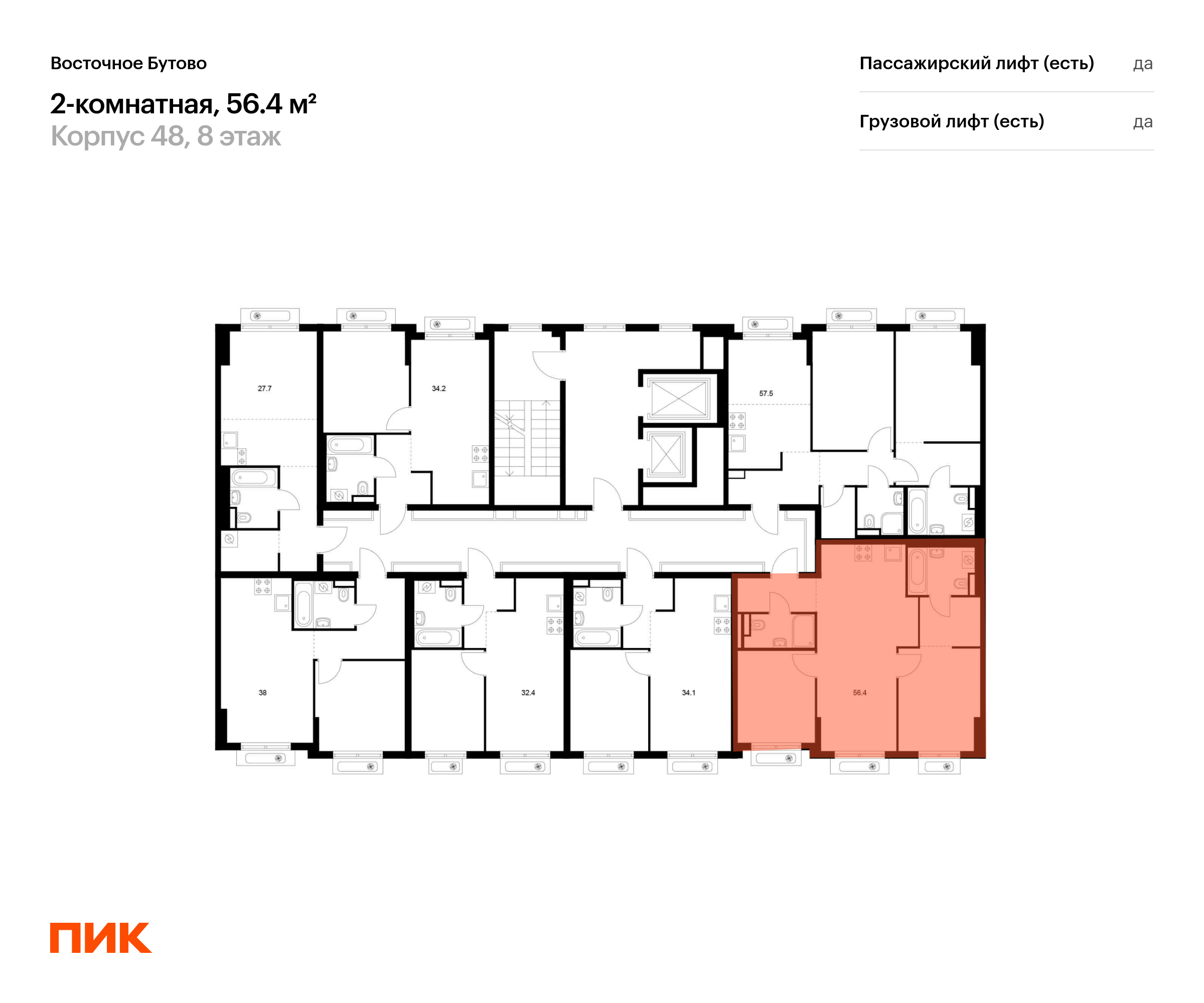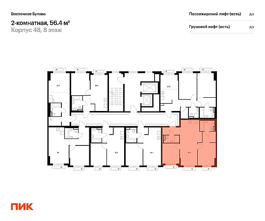 Продаётся 2-комн.квартира площадью 56.40 кв.м на 8 этаже 15 этажного дома (Корпус 48, секция 3) проекта ПИК Восточное Бутово. Светлый просторный подъезд на уровне земли, функциональная планировка, большие окна, с отделкой.