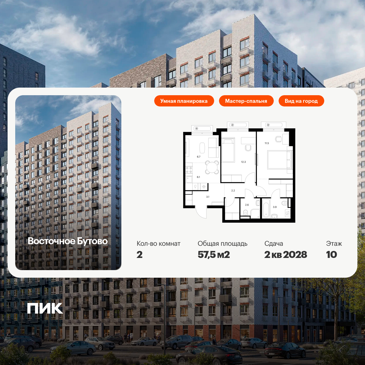 Купить 2к квартиру 57 м² в ЖК Восточное Бутово