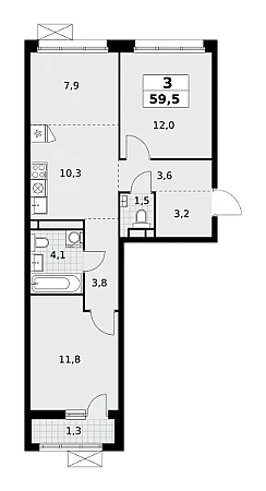 Купить 3к квартиру 59 м² в ЖК Родные кварталы