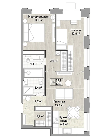Купить 2к квартиру 60 м² в ЖК Новые Смыслы