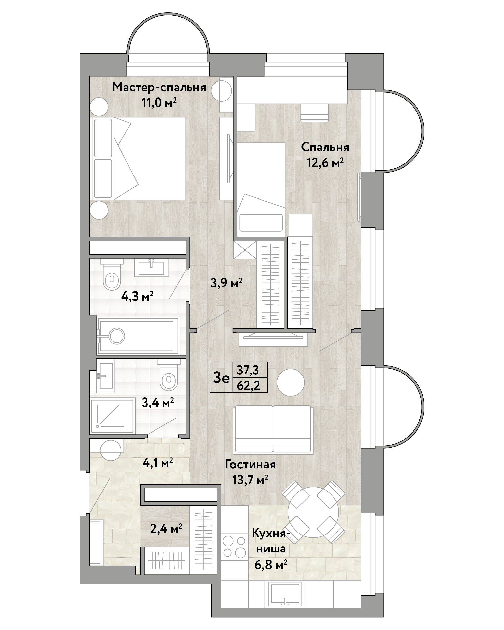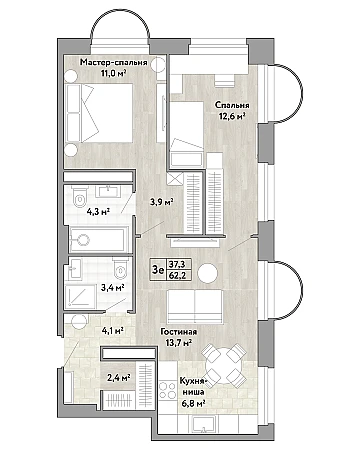 Купить 2к квартиру 60 м² в ЖК Новые Смыслы