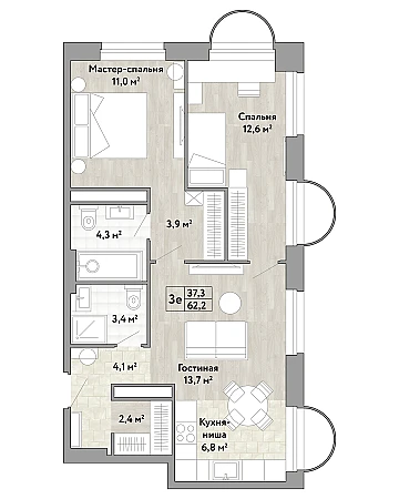 Купить 2к квартиру 62 м² в ЖК Новые Смыслы
