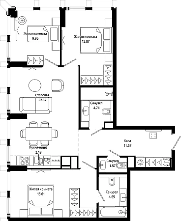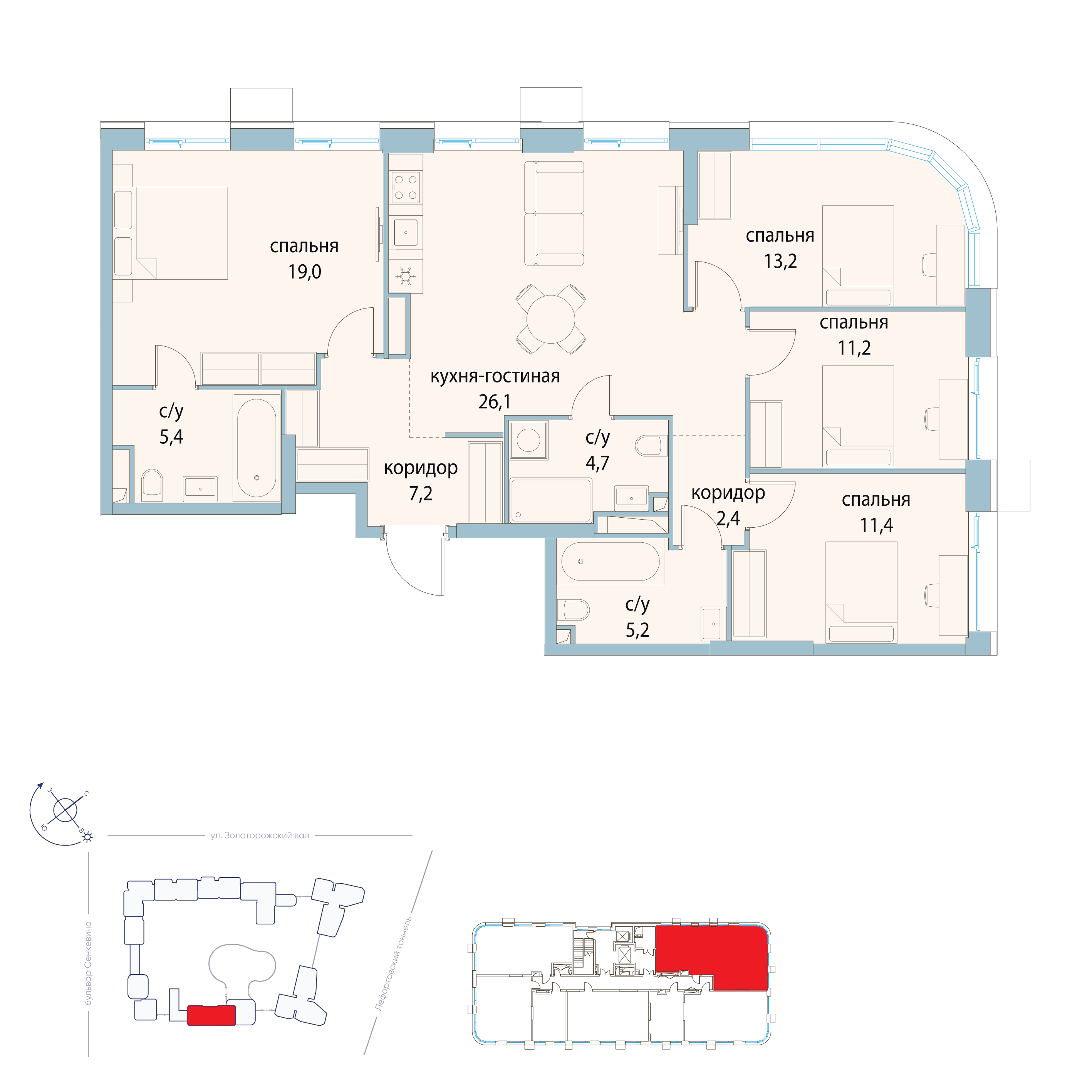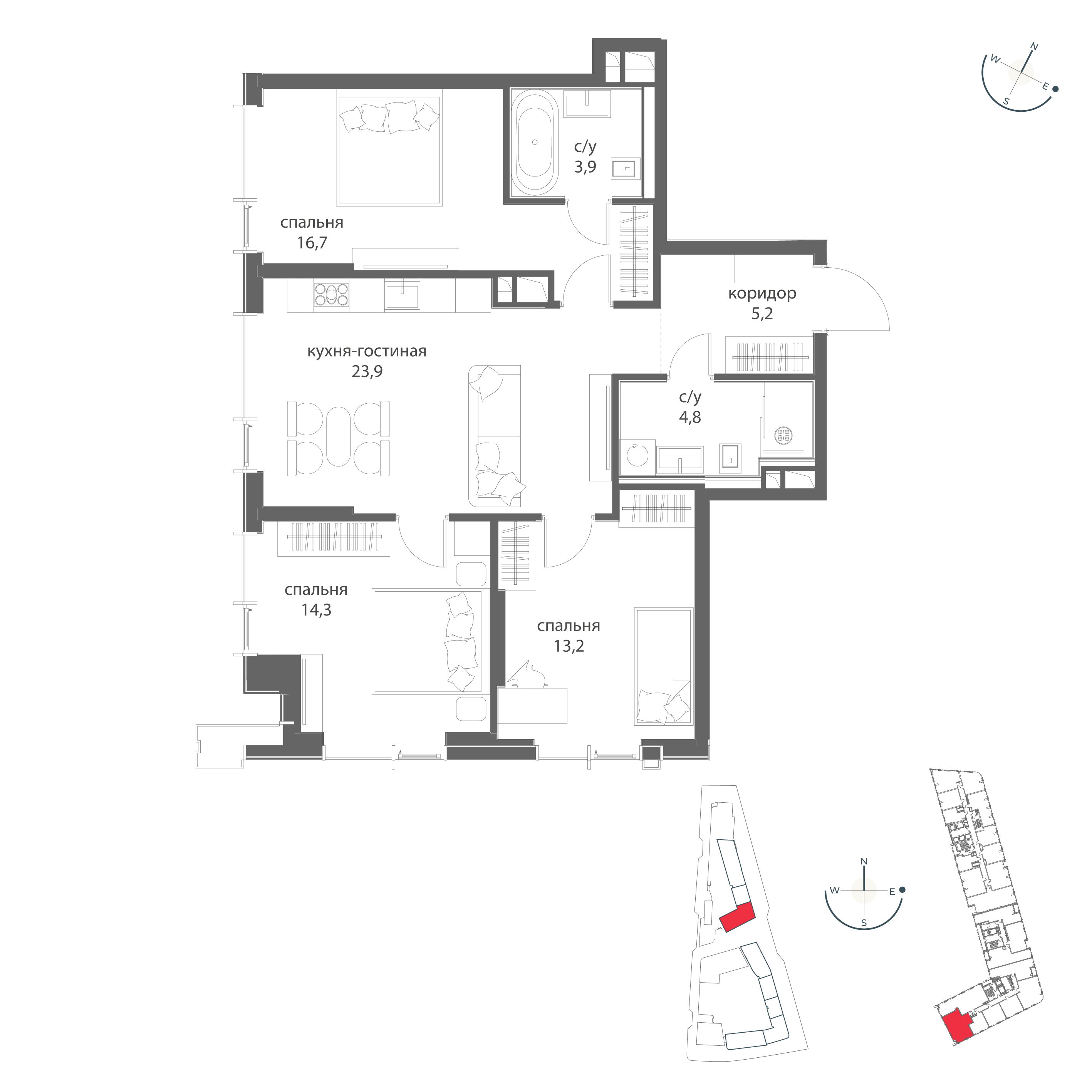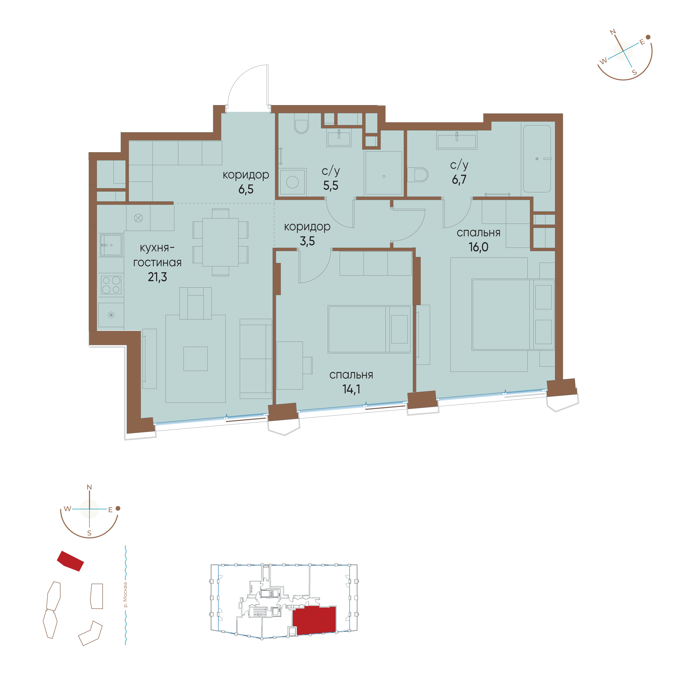 Купить 3к квартиру 86 м² в ЖК MOD (Мод)