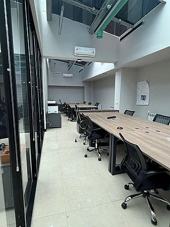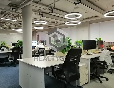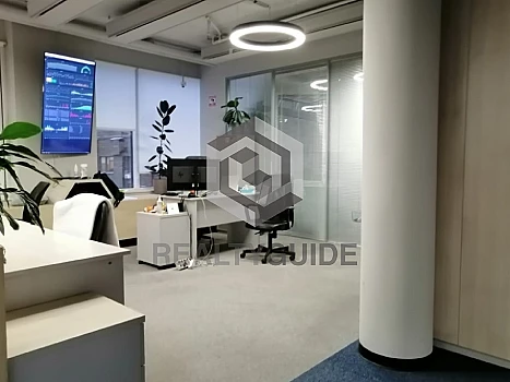 Полностью мебелированный офис с качественной отделкой. Есть собственная кухня.