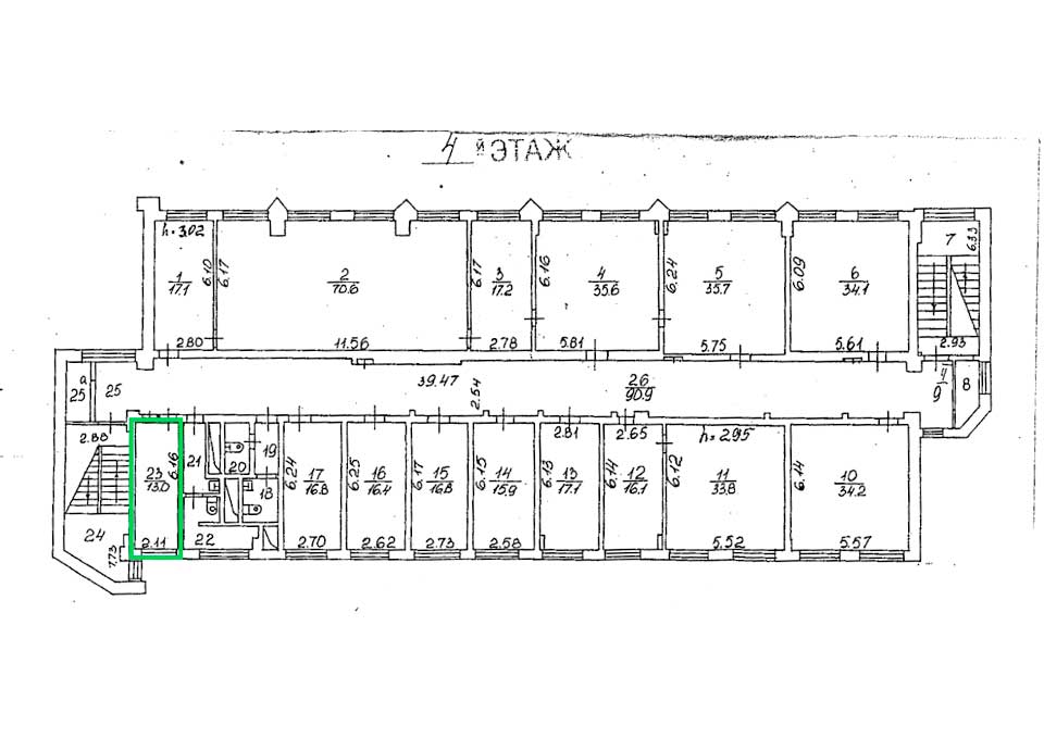 Предлагается в аренду помещение общей площадью 13,0 м2 на 4-м этаже (комн. 408), лифта нет в здании. Планировка кабинетная, состояние помещения – готово к въезду. Назначение – помещение для работы офисных сотрудников. Высота потолков – 2,95 м.
