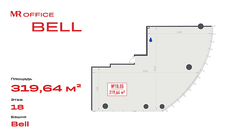 Продается офисное помещение 319.64 кв.м на 18 этаже в новом небоскребе класса Prime — БЦ BELL на Белорусской от бренда MR Office.