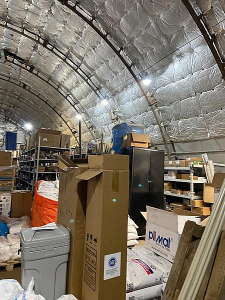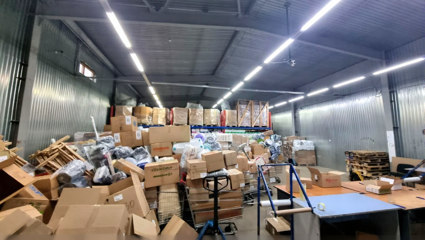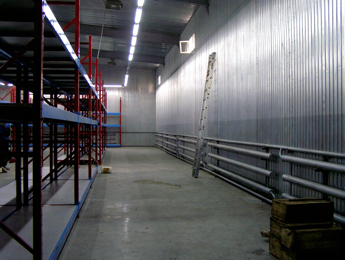 Теплый склад, оборудован противопыльными полами. Наличие стеллажей (на фото) + дополнительные полки и стойки (по необходимости). Удобный доступ автотранспорта к воротам и наличие двух входов обеспечивают легкую погрузку и разгрузку. Находится на охраняемой территории установлено видеонаблюдение.