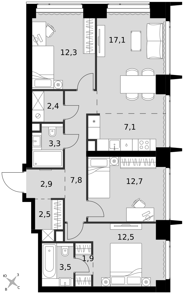 · Варианты использования: Хватит места и под классическую двушку, и под модную "евро-трешку".