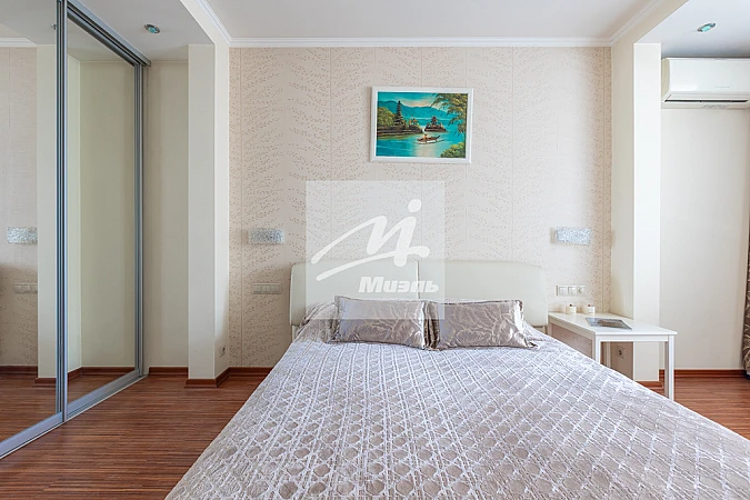 Интерьер выполнен в современном дизайне, подчеркнутый высококачественными материалами и отделкой. Венец красоты — отделка стен венецианской штукатуркой, итальянский паркеты ручной работы, созданные из редких пород древесины, мраморные элементы интерьера, придающие жилью особый шарм и индивидуальность.