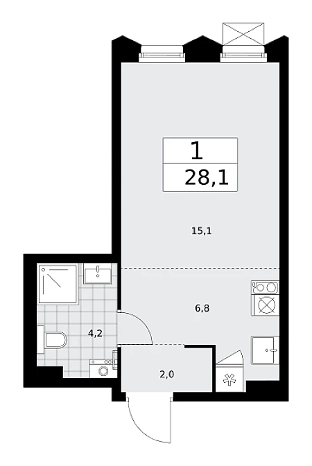 Квартира расположена на втором этаже 17-этажного панельного дома, построенного в 2020 году. Высокие потолки (2,7 м) и большие окна, выходящие на улицу и во двор, создают ощущение простора и свободы. Жилая площадь составляет 28 кв. м, а кухня — 10 кв. м. Евродвушка: большая комната 16 кв. м объединенная с кухней и спальня 12 кв. м идеально подойдут для семьи.