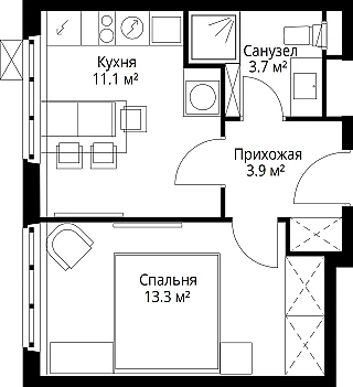 Площадь жилая: 22,7 м²