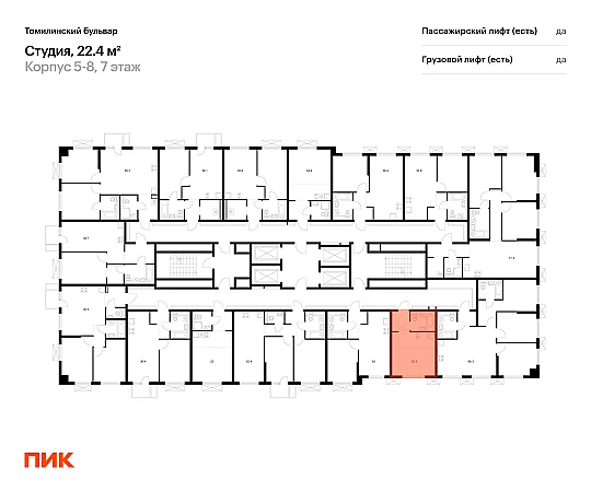 Продаётся квартира-студия площадью 22.40 кв.м на 9 этаже 25 этажного дома (Корпус 5-8, секция 2) проекта ПИК Томилинский бульвар. Светлый просторный подъезд на уровне земли, функциональная планировка, большие окна, с отделкой.