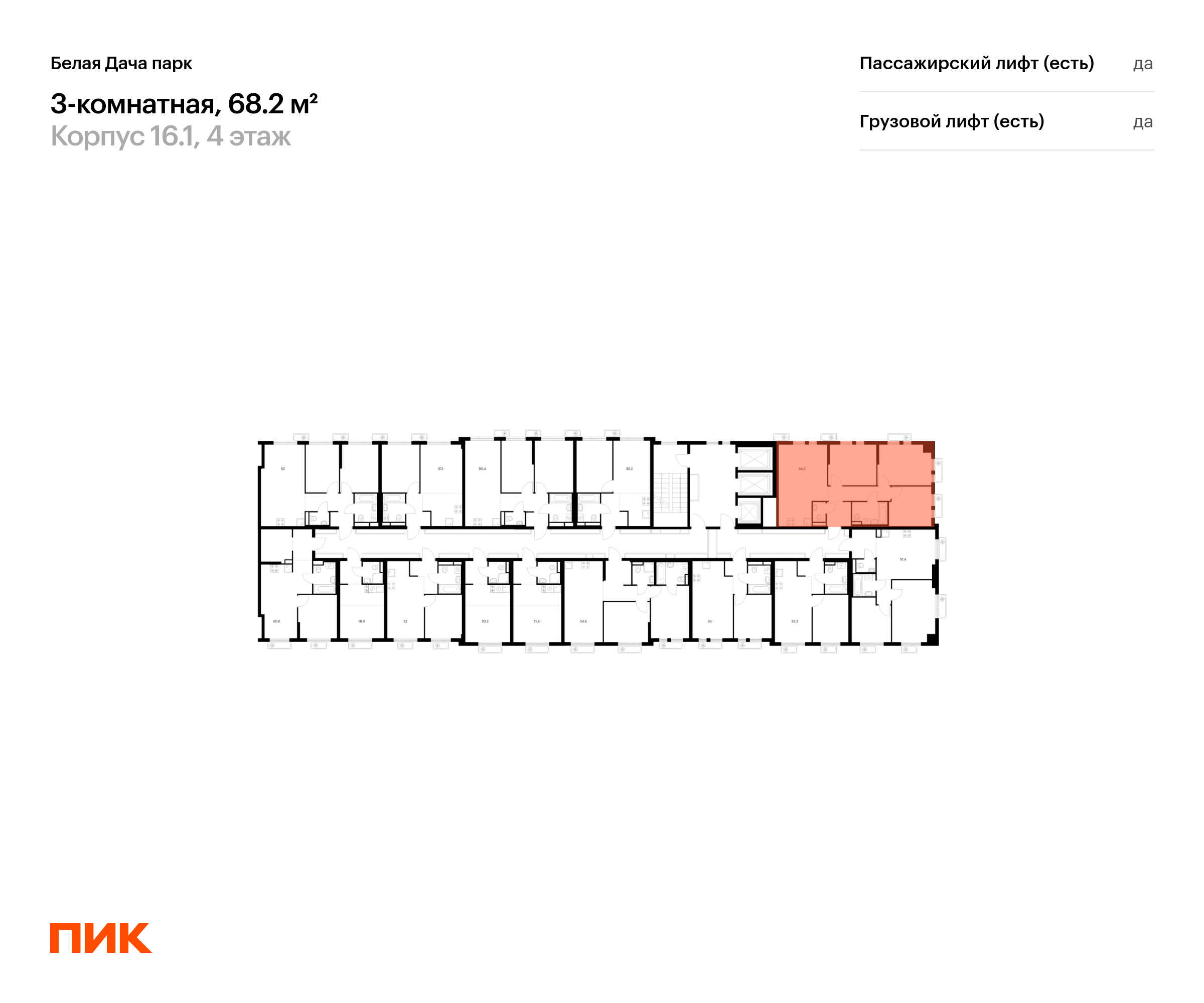 Продаётся 3-комн.квартира площадью 68.20 кв.м на 4 этаже 25 этажного дома (Корпус 16.1, секция 1) проекта ПИК Белая Дача парк. Светлый просторный подъезд на уровне земли, функциональная планировка, большие окна, с отделкой.