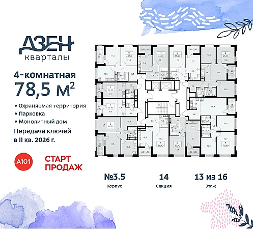 Купить 4к квартиру 78 м² в ЖК Дзен-кварталы