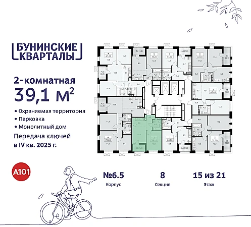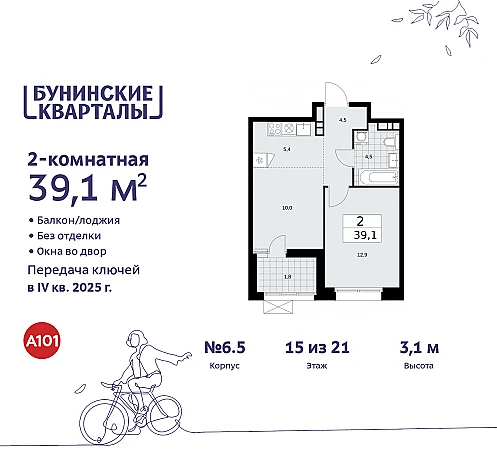 Купить 2к квартиру 39 м² в ЖК Бунинские кварталы