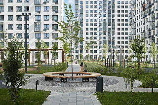 Проект комплексного благоустройства района разрабатывает профессиональное архитектурное бюро «ПланАр». Его главная идея – «Выходи гулять!» Общественные пространства организованы так, чтобы обеспечить одновременно и взаимодействие, и разделение активностей для людей разных возрастных групп и интересов. (AQID02313743)