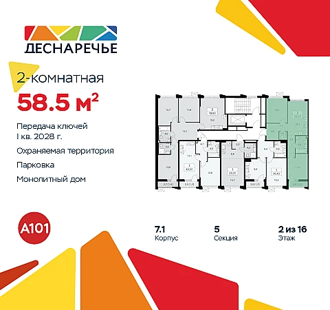 Купить 2к квартиру 58 м² в ЖК Деснаречье