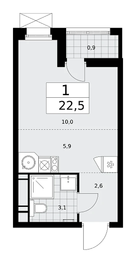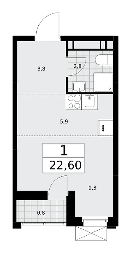 Продается однокомнатная квартира-студия в ЖК "Деснаречье" на 3 этаже. Квартира без отделки, полностью готова к ремонту. Общая площадь: 31.7 кв.м., площадь гостиной 22 кв.м., из которых 6.7 кв.м. выделено под кухонную зону. Все окна выходят на одну сторону. В квартире одна лоджия, один совмещенный санузел. Высота потолков 2.95 м.