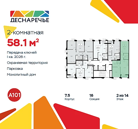 Купить 2к квартиру 58 м² в ЖК "Деснаречье"