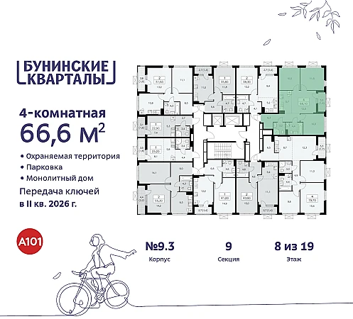 Купить 4к квартиру 66 м² в ЖК "Бунинские кварталы"