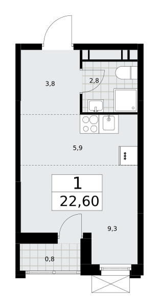 Продаётся квартира-студия, площадью 22,6 кв. м на 16-м этаже дома бизнес-класса в ЖК "Скандинавия". Квартира с функциональной планировкой: большие окна, высота потолка 3,1 м.