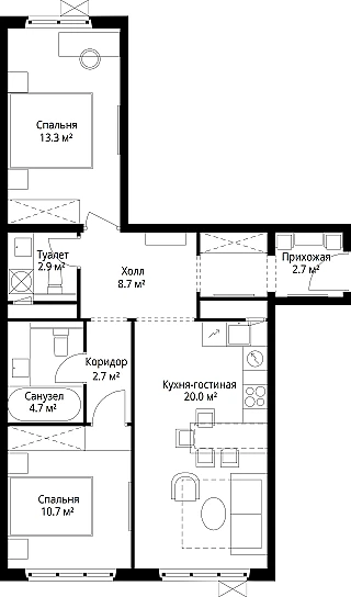 Купить 3к квартиру 69 м² в ЖК G3 Михалевич